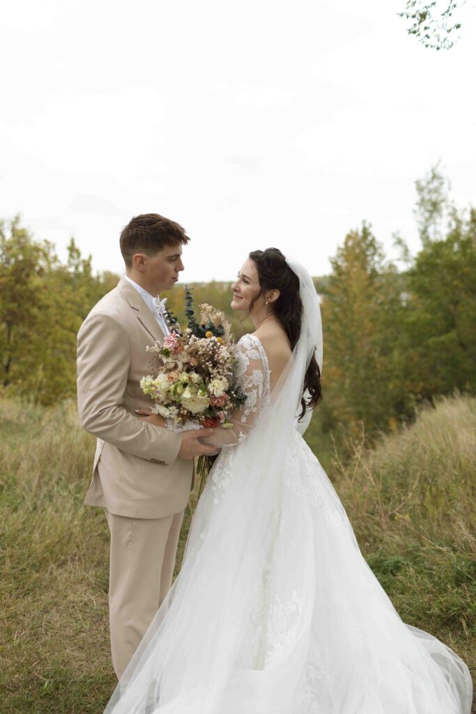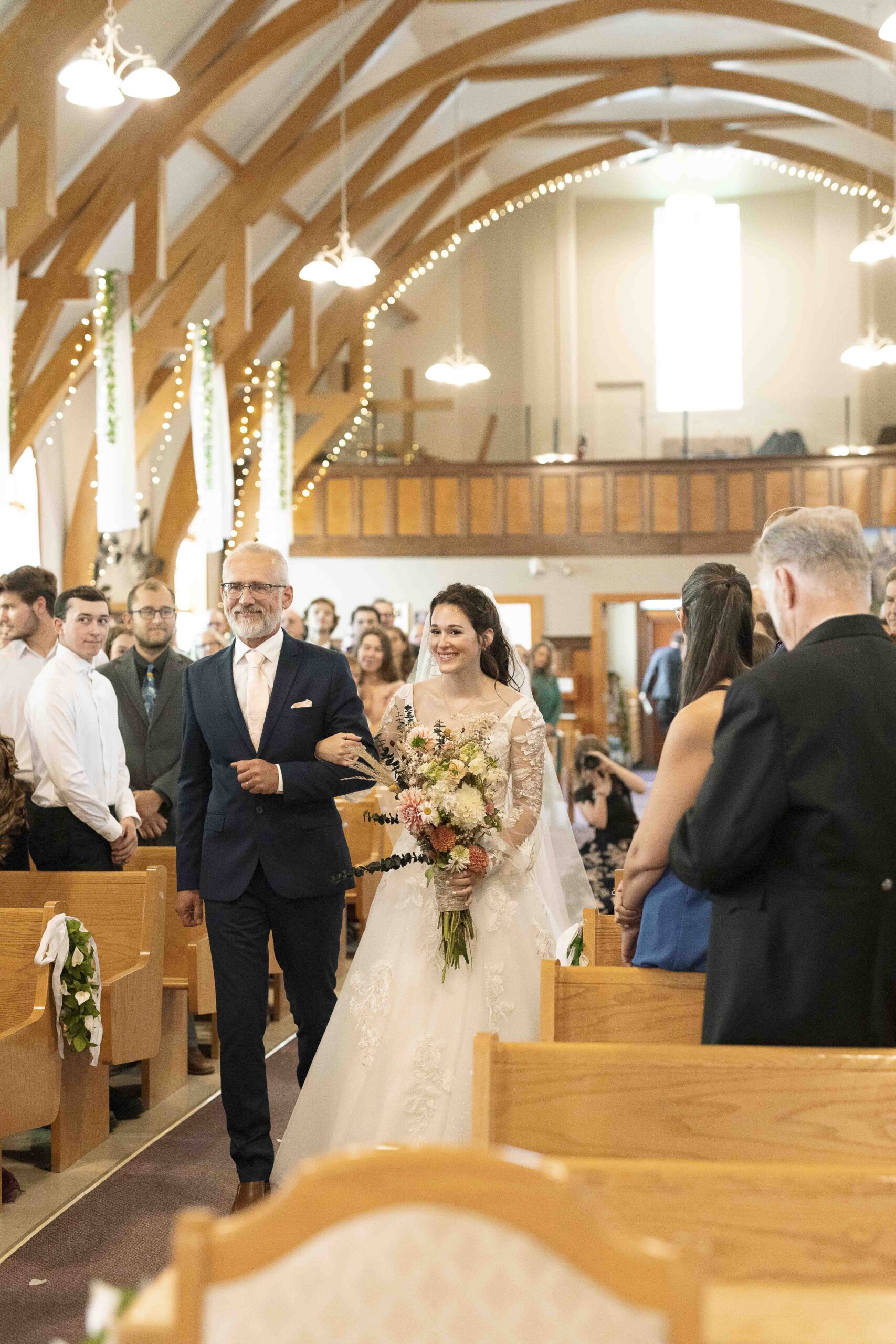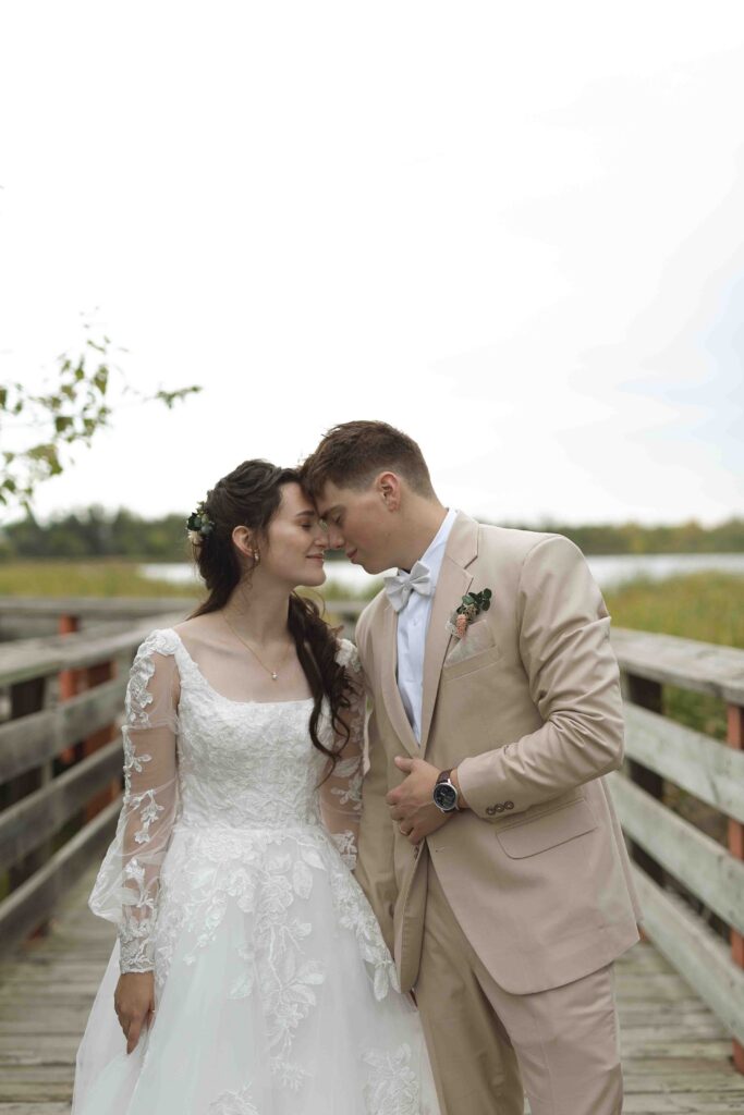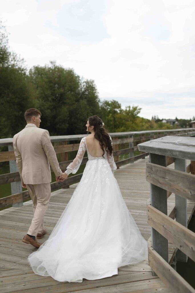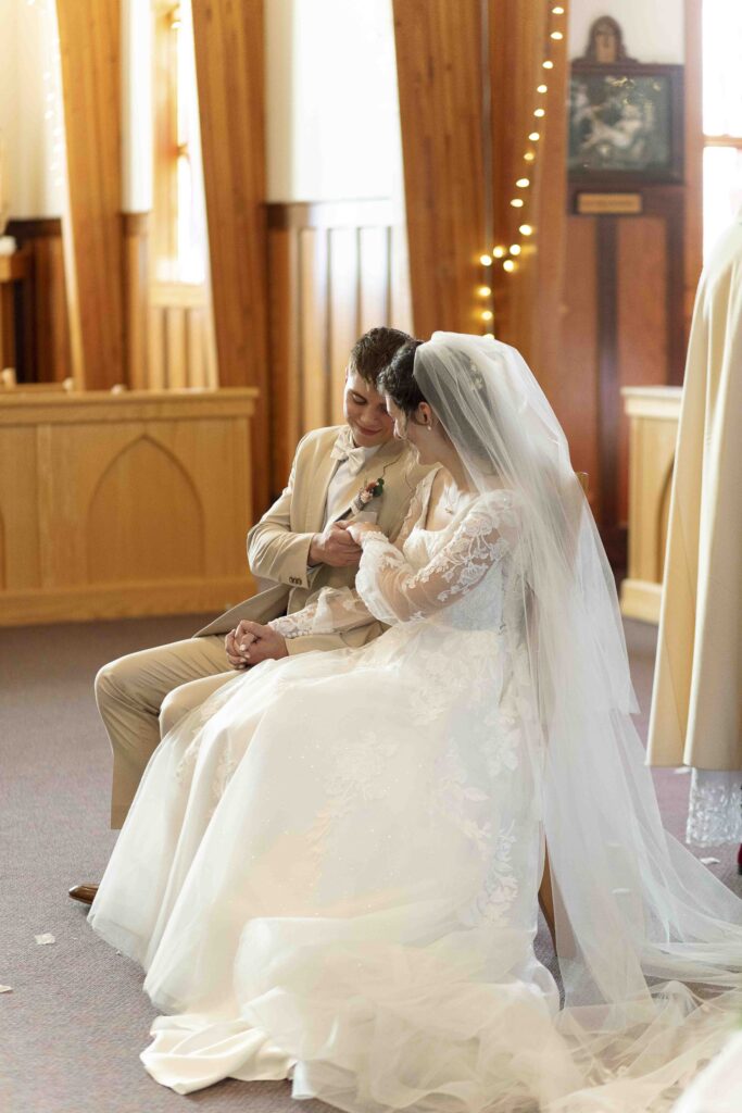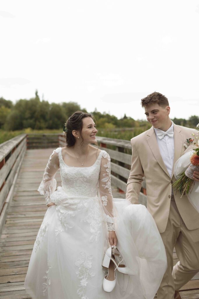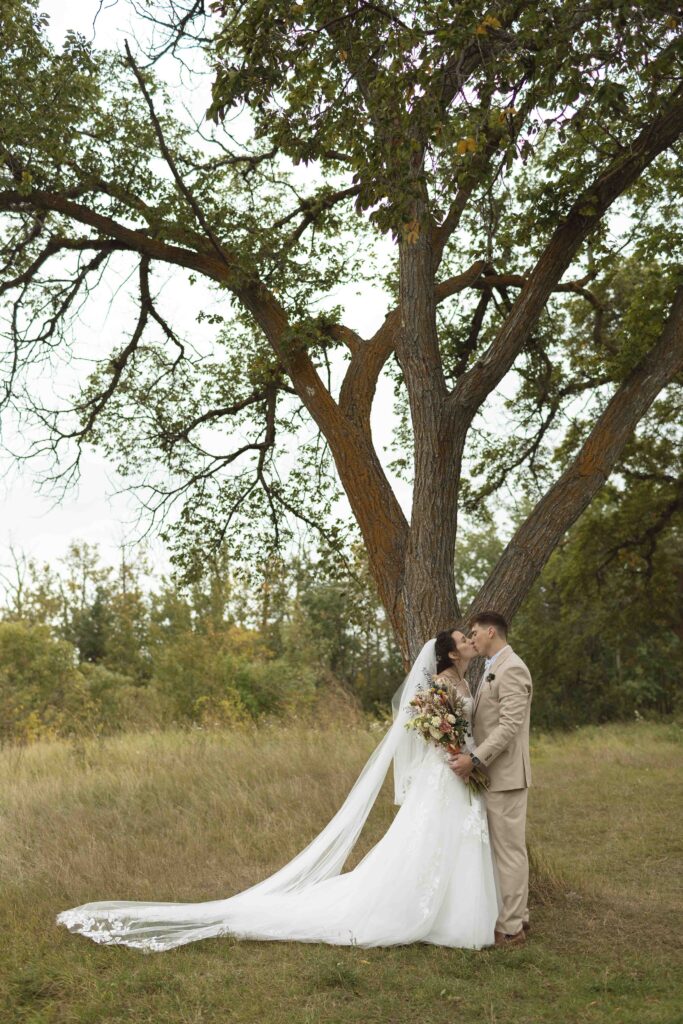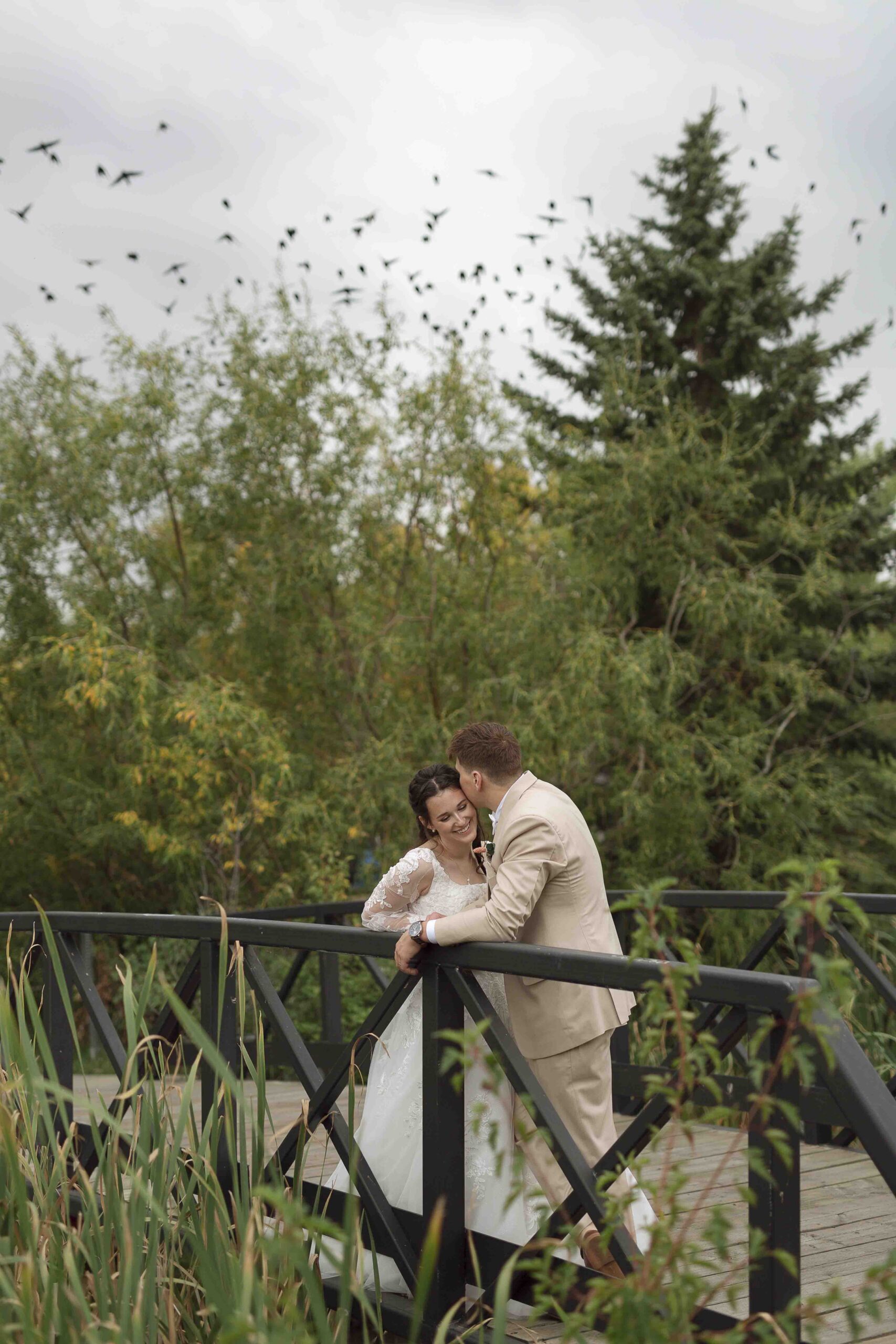 Lydia and Tim got married on a somewhat overcast, somewhat rainy, and completely perfect September day. The ceremony took place at St. Michael’s Catholic church in Leduc, Alberta. The beautiful little church sits right next to Telford Lake, making their wedding feel like something out of a romance movie.