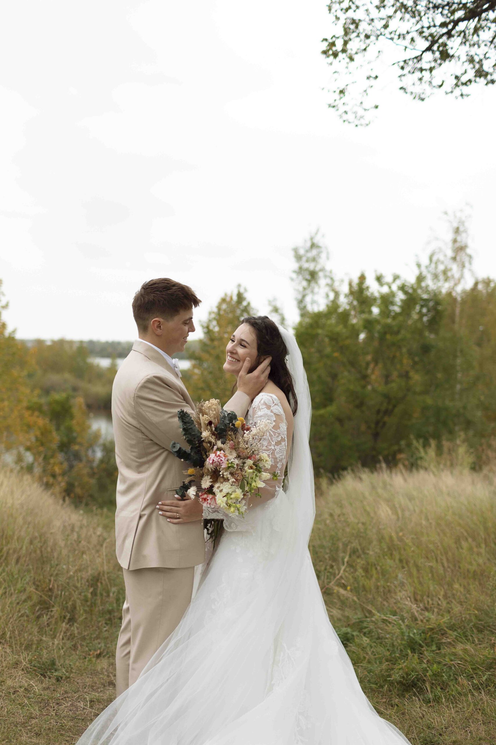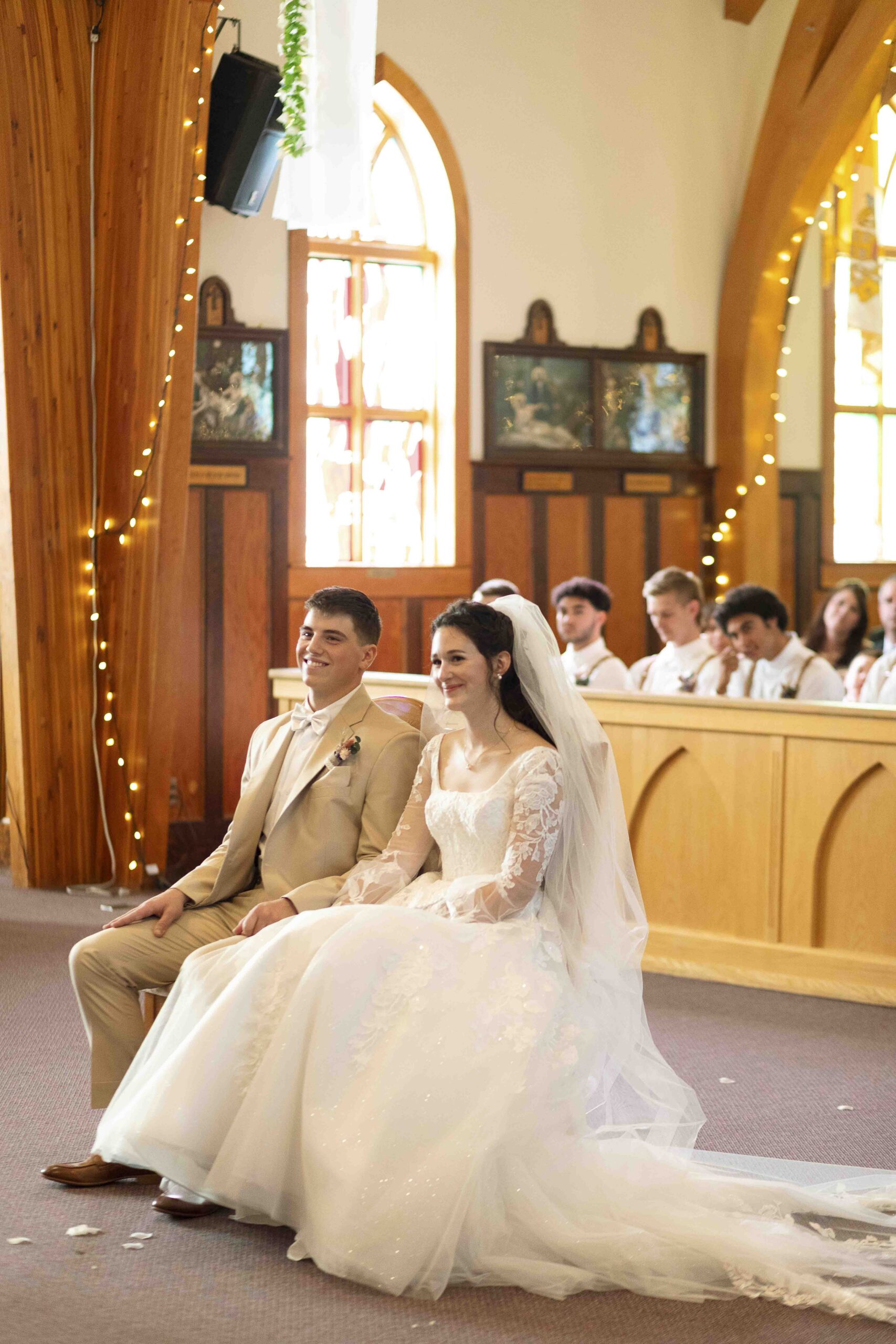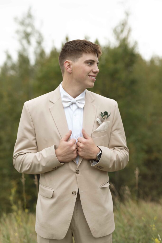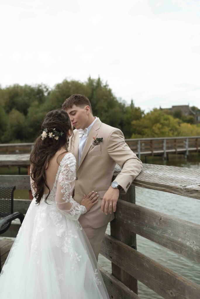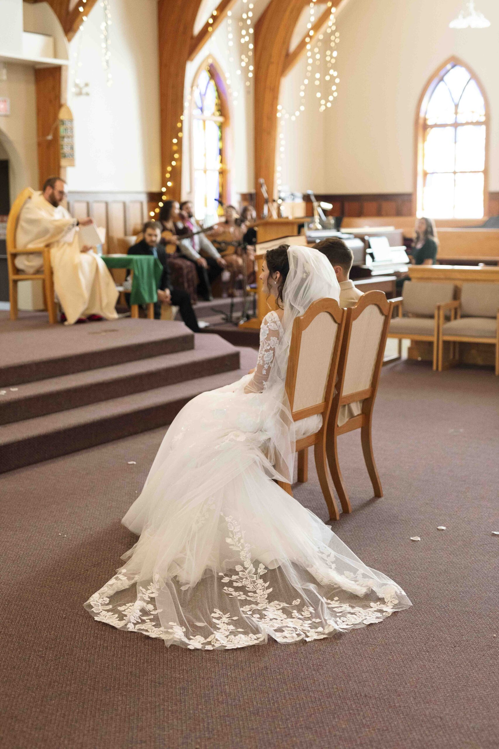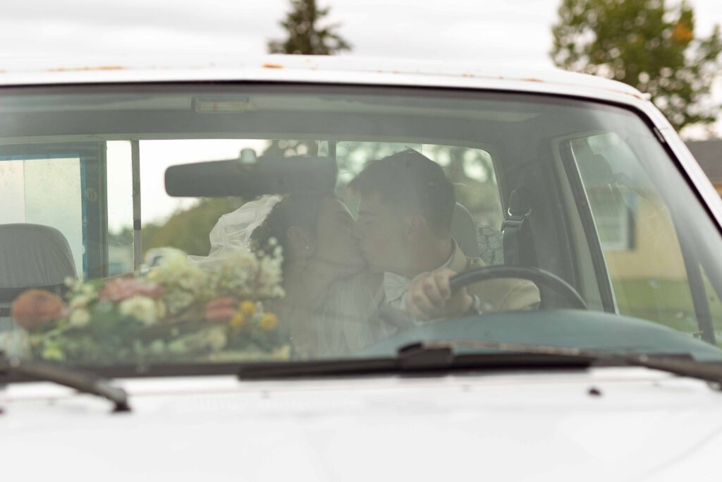 Lydia and Tim got married on a somewhat overcast, somewhat rainy, and completely perfect September day. The ceremony took place at St. Michael’s Catholic church in Leduc, Alberta. The beautiful little church sits right next to Telford Lake, making their wedding feel like something out of a romance movie.