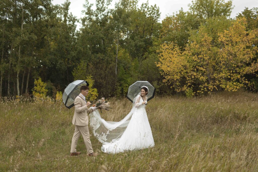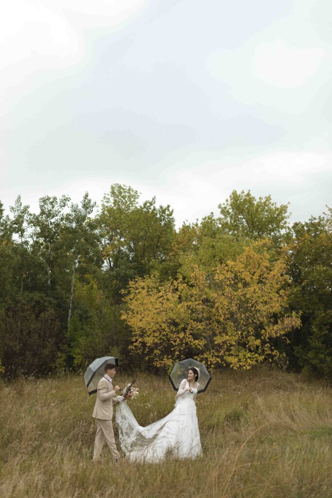 The weather was good for the majority of the day, but during the last segment of their bridal portraits, the rain started coming down pretty hard. Those rainy images ended up being some of my favourites, as I’m sure you’ll soon see.